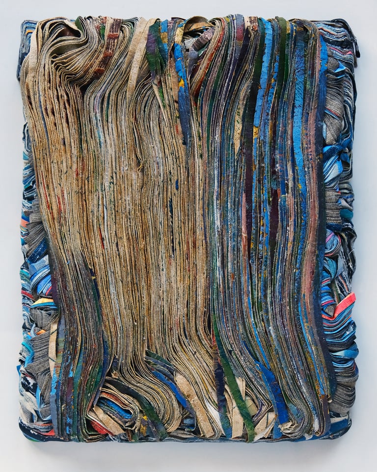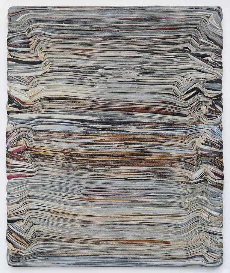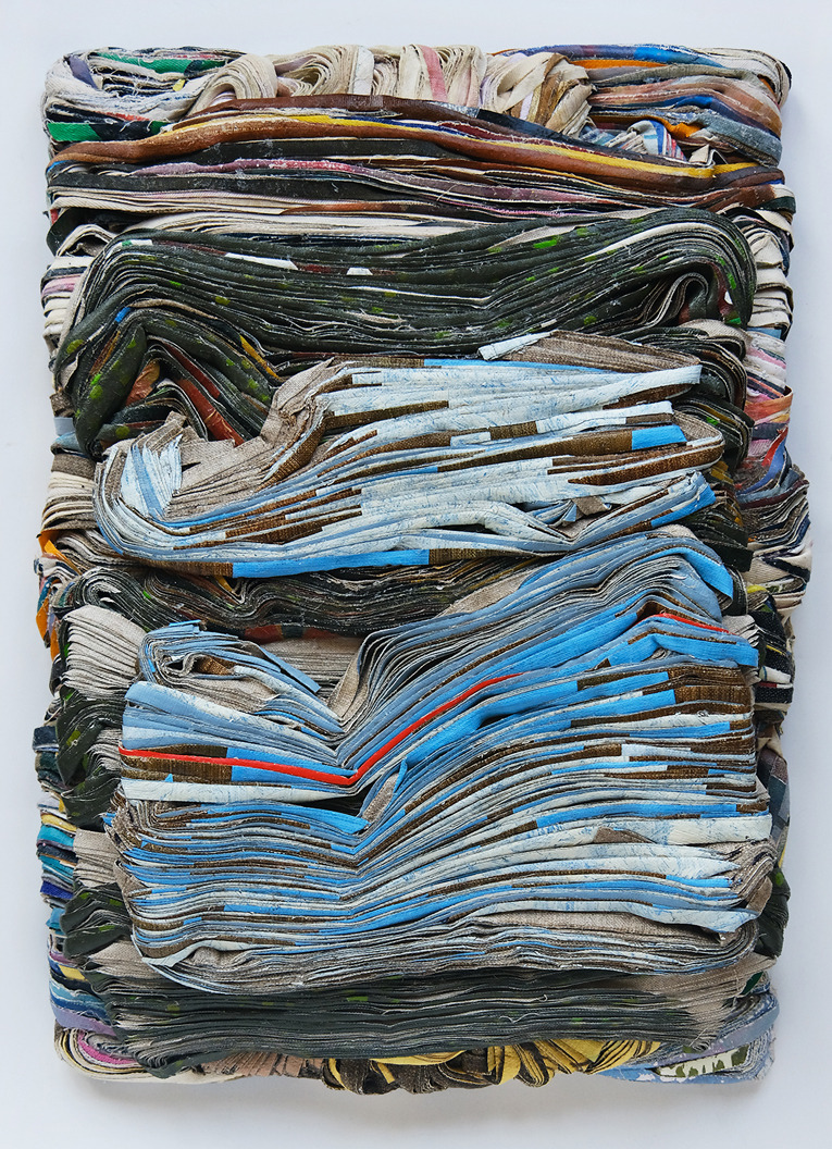"Resztki zebrane", nr 1, akryl, olej, klej, sklejka, 45 x 34 cm, 2023
