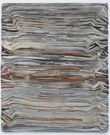 "Tissues", acrylic, oil, canvas, glue, plywood, 43 x 34 cm, 2023