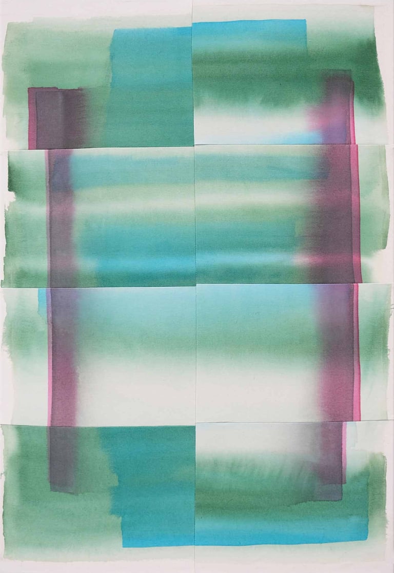 Z serii „One Error”, akryl, płótno, nić, 80 x 120 cm, 2022